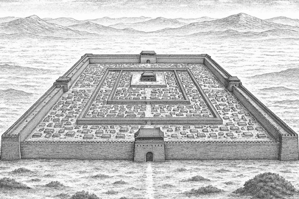 その後、城壁を取り壊した後の黒い線の部分が、都市開発の軸となる道路になります。これが”三線道路”です。